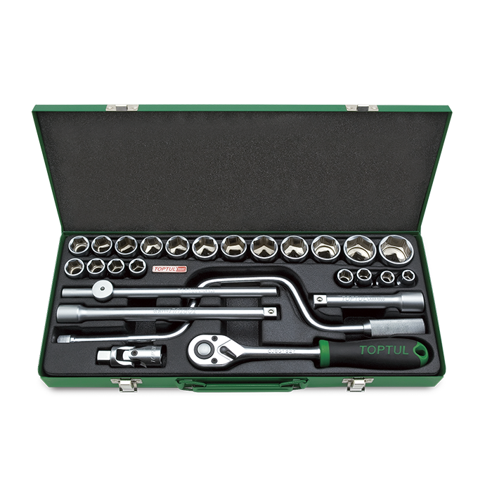 Juego llave carraca 1/2″ + vasos 6c (26 pzas.)