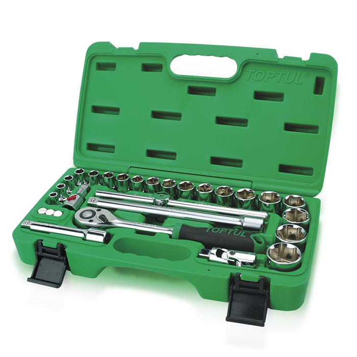 Juego llave carraca 1/2″ + vasos 6c (28 pzas.)