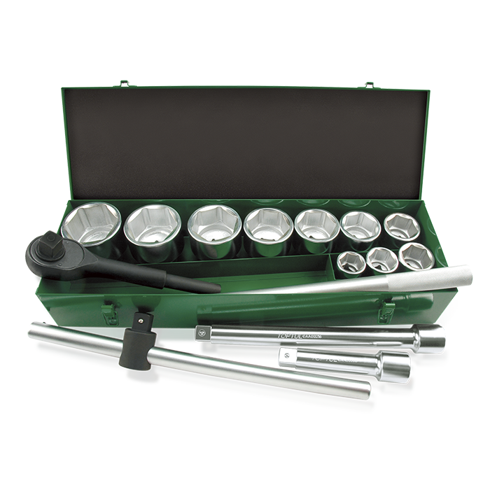 | GCAD1402 | 14 pzas. Llave de carraca 1", Alargadera 1" 200 mm, Alargadera 1" 400 mm, Adaptador 3 vías H1" - M1" x agujero 34 mm, Vasos cortos 1" 6C: 36, 38, 41, 46, 50, 55, 60, 65, 70, 75, 80 | 2 |