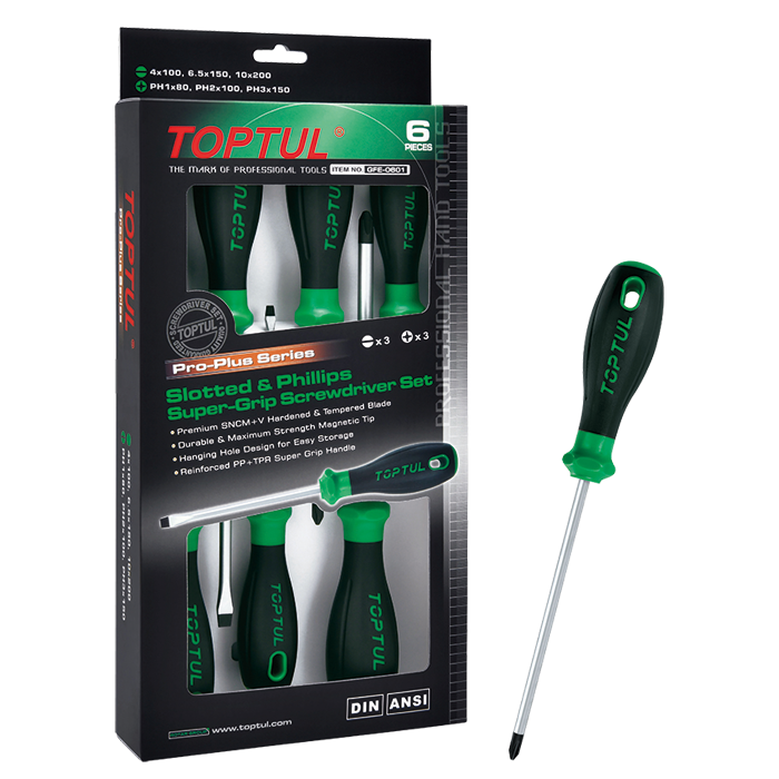 GFE-0601 6 pzas. 3 Planos: 4, 6,5, 10 + 3 Phillips: PH1, PH2, PH3 20