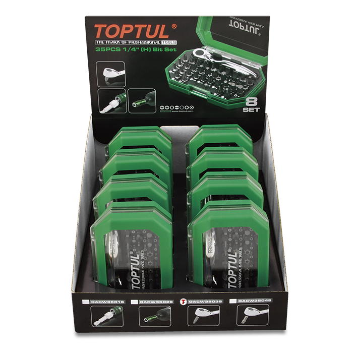 GACW3503S 35 pzas. Puntas Planas + Phillips + Pozidriv + Hexagonal + Torx + Torx inviolable + Carraca min 1