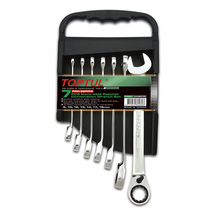 Juego de 7 llaves combinadas con carraca reversible
